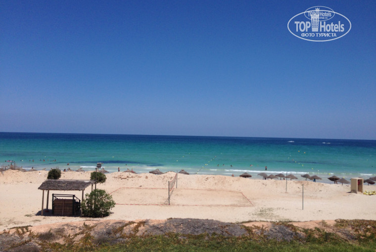 Территория отеля не большая но уютная, отель находится можно сказать на пляже. Пляж песчаный, море чистое, единственный недостаток это животные на пляже(лошади и верблюды) но так как пляж городской- администрация отеля с ними справиться не может, на пляже бесплатные зонты и лежаки с матрасами, обслуга поможет и поставить шезлонги и смести песок с матрасов. На территории отеля 4 бассейна, крытый пока законсервирован. Территория засажена пальмами, цветущим кустарником, все цветет и благоухает.