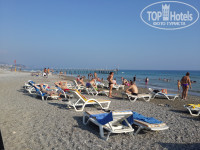 Что еще? на территории есть фитнес зал - не ходили. И комплекс с сауной,хаммамом,баней, и холодным бассейном. Все это бесплатно с 13:00 до 15:00, сауна понравилась. Пляжные полотенца выдают там же - в сауне. НО! Хотите поменять ? только за доллар. Очень не удобно, приходилось ходить с одними и теми же влажными полотенцами все 9 дней. Территория отеля не большая но уютная, за ней погулять особо негде, Налево от отеля есть бюро экскурсий, там можно не дорого взять что нибудь интересное. Мы брали рафтинг на лотках (40$ на двоих)- понравилось. Да, и еще, многие писали про магазин кожи, который каждый день пытаются впарить, это действительно надоедает, на пляже ходит женщина и все время пытается уговорить поехать в их меховой салон бесплатно. Но судя по отзывам, очередная замануха. В целом отдых хороший, из отдыхающих в основном украинцы, белорусы, казахи, турки и другие нации. Русских очень мало, человек наверное 15 наберется))) Надеюсь в следующем году ситуация изменится.