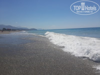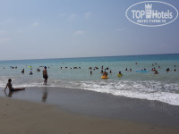Пляж. Пляж хороший, Заход камешки, потом ямка, в воде и мягкий премягкий песочек, очень приятный. Никаких глыб на дне не было, ну камни большие есть но они не острые. Но в основном мягкий песок. На пляже почти каждый день волны, сильные, но детям очень нравилось. Кстати детей таим очень много.