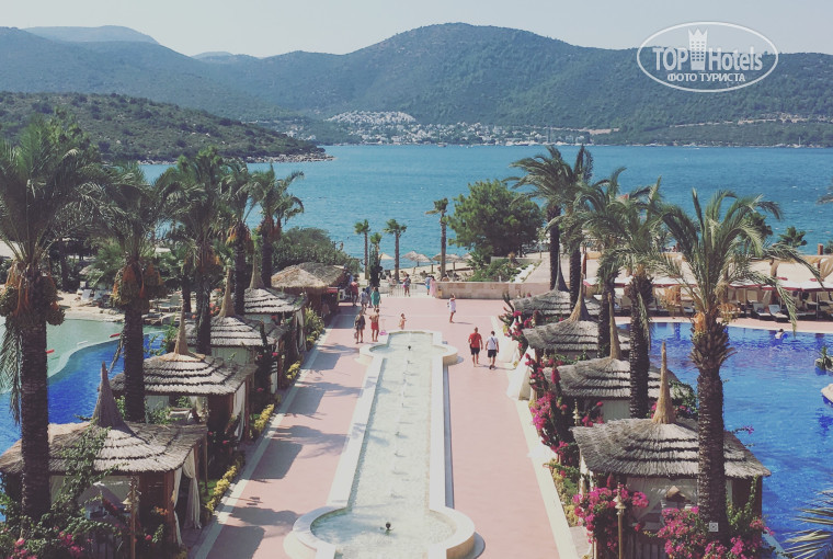Отель позиционирует себя как вип,но это не так₽еда на твёрдую 3ку,в рыбный день даже на 4ку)Номера норм,как на фото,гели для душа,лосьоны для тела бренда Etro ,но по факту обычные баночки и соответсвенно наполнители)))просто какая то беда с полотенцами,даёшь 2ки и берёшь два полотенца и носишься с ними каждый день,как с писанной торбой)восточном контент турки,такие,скажем так,зажиточные)))впринципе без разницы,но сами понимаете,Турки уделяют больше внимания своим согражданам)и это порой напрягает,хотя мы впринципе,не требуем к себе особого внимания)анимация-просто на полном морозе)не видел не слышно,выбежали провели water polo и Aqua gym и не видно до следующего Активити,хотя,это тоже не сильно и требовалось,но такого ещё не видела,чтоб все аниматоры ходили без улыбки целыми днями)сам Брдрум просто просто прекрасный оч понравилось)))отель этот больше не выберем цена высокая,а сам не дотягивает)))в Бодрум обязательно вернёмся)