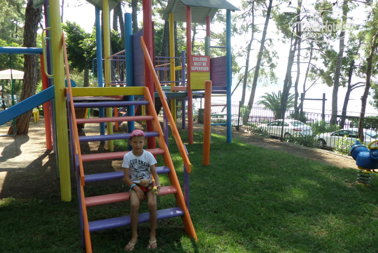 ИНФРАСТРУКТУРА. Для обеда еще рано. Вся надежда на снэки у бассейна. Переодеваемся в пляжное, идем и… разочаровываемся. Во всех египетских пятерках, где мы были (Sunny Days, Aqua Blue, Sunrise Makadi) и даже в захудалой турецкой четверке (Matiate) сэндвич и пицца-тайм были приблизительно с 11.00 и до начала обеда. Здесь же закуски начинали подавать в 15.30 – через полчаса после окончания обеда. Некомильфо. Нерационально. Странно. Обед всегда сытнее, чем завтрак, в это время мы были совсем не голодны еще. Да и столь вредную и сытную пищу лучше употреблять с утра – чем раньше, тем лучше. Поэтому я пробовала эти закуски всего один раз. Муж с сыном, может, раза 3-4 от силы. Подавали в основном куриные нагетсы (разных форм) и картофельные палочки. Немного овощей. Снэков и пиццы не было. Но вернемся к первому дню. У бассейна – тишина. Ни снэков, ни народу, ни музыки. Непривычно тихо. Я расстроилась, а муж обрадовался, т.к. устал от музыки на работе (ресторанный бизнес). Пейзажу глаз радуется – много зелени и сосен, жара переносится легко. Вид на море – бассейн как бы на террасе. К морю рукой подать – через узенькую дорогу с неинтенсивным движением. По обе стороны от перехода – лежачие полицейские. Даже если захочешь, особо не погонишь. К середине отдыха смело отпускали Кирюшу самого через дорогу. Что еще в наличии? Бар. Столики на террасе над морем. Настольный теннис. Вай-фай ловит хорошо. Мы -все такие под впечатлением - отзвонились всем кому надо и не надо. Кое-кому показали видео. Накупались в бассейне. Пора и обедать.