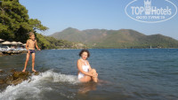 ВСТРЕЧА С ГИДОМ. Весь следующий день мы били рекорды по пребыванию на воздухе. Муж сказал, что дней отдыха слишком мало, и идти днем в номер он с сыном не будет. Будут сидеть в бассейне. Слово сдержал, но были побочные действия: с очень чумной головой он вырубился сразу после ужина. Больше решил не экспериментировать. Я же ушла днем в номер, но провела там не больше часа. Ребенок разбудил и потащил на пляж. Решено было, что в 18.00 на встречу с гидом иду я. Беру ваучеры, билеты, страховку, и направляюсь в здание рецепшна. Гидом оказалась Анна. Судя по всему, русская, возраст – 30+. В общении приятная – не вешала лапшу на уши, не слишком навязывала экскурсии… Но то, что она выкинула, в последний день не лезет ни в какие ворота (об этом позже). На встрече оказывается, что Гена из Харькова приехал с весьма солидной компанией – всего 9 человек. Его первая просьба к гиду – можно ли заменить кровать на бОльшую, потому что ребенок не помещается. Девочка 14-15 лет тоже очень высокая – вот они, гены Гены! К чести гида, замечу, что встречу начали с наших вопросов и просьб, а не с экскурсий. Отклонюсь от темы: моя кума, отдыхавшая с 2-летним крестником в Кемере, негодовала от того, что вся встреча с гидом сводилась: 1) к лекции о том, какие тупые отдыхающие, которые едут в Турцию ради олинклюзива, здесь же такая богатая культура (не их, простите, дело: кто и зачем едет) и 2) купите экскурсии и ТОЛЬКО у нас. При этом ни на один вопрос по инфраструктуре отеля гид не ответил. В Анне как раз порадовало отсутствие «моралитэ». Задаю вопрос о сейфе. Ответ меня более чем удовлетворил: раньше был платным, сейчас бесплатно, потому как очень плохой сезон, все для туристов… Приятно. Спрашиваю об интересующих меня экскурсиях: Памуккале и Эгейские острова. На Памуккале хотела давно попасть – казалось бы, сейчас самое время. Туристов мало. По словам гида, из Анталии автобусы сейчас не возят. Если раньше на парковке было до 60 автобусов, то сейчас – 10 (все с Эгейского побережья). Плюс отсюда всего 3 часа езды… Но есть и большие «но». Наш шилопопый Кирюша точно не выдержит такой поездки и будет ныть. Оставить с мужем и ехать одной? Ну да, вариант (хоть и скучновато). Спрашиваю цену: 56 долларов. Хм… Перед этим прошерстила цены в турагентствах Мармариса с собственными сайтами: за 40 долларов можно уехать. И вторая экскурсия – Эгейские острова. Перед презентацией данной экскурсии Анна вкрадчиво спросила: на какое море мы приехали? Все дружно ответили: на Эгейское. Но гид всех разочаровала:в Мармарисе – Средиземное море, а в его окрестностях Эгейское. Да уж.. На экскурсии, кстати, встречали людей из отелей Мармариса, которые искренне убеждены, что купаются в Эгейском. Ну-ну, «я сам обманываться рад». В общем, суть в том, что побывать на Эгейских островах было моей давней мечтой. Дилеммой было лишь: брать экскурсию на несколько островов или только на остров Клеопатры. Анна настоятельно советовала Клеопатру, т.к. на островах в основном тусит молодежь из «троек» - там музыка и вечное веселье. А почему она решила, что это минус?))) Цена экскурсии на Клеопатру – 46 со взрослого и 10 с ребенка. Ну откуда вы берете такие цены??? Ну почему в «Дэйзи турс» - 33 доллара со взрослого и бесплатно ребенок? И идем в море мы на одной яхте, и едем не менее комфортабельным автобусом, и точно так же у нас «все включено». Услышав цены, бол