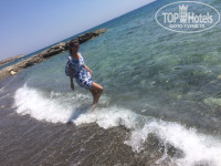 Как бы не упирался ваш туроператор, что мол там камень с песком - не верьте! (наш просто упирался). Там мелкая галька. На второй день привыкаешь на самом пляже, а в воду заход сложноват. Это не коралы конечно, но и не песочек! Плиты и камни. Мы не приемлем купание в обуви, потому заходили по пояс и плыли до глубины.