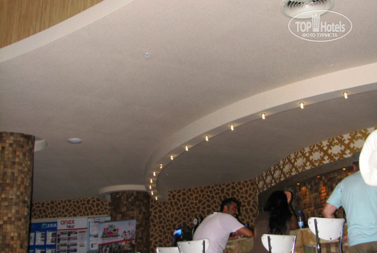 нормальное, если не считать соевое мясо. Обычная еда в скромных границах. Завтраки простые, скромные, не для приверед: варёные яйца, яичница, соевые колбасы и сосиски, неплохая брынза, плавленые сырки, масло, булочки-хлеб, свежие помидоры-огурцы, кофе, капуччино, эспрессо, чай, юпи, водичка. Обед-ужин : суп-пюре, рис, картошка в разных вариантах, макароны, салатики из несъеденных накануне овощей и колбаски. Очень вкусная сюзьма (это очень густая простокваша, напоминающая жидковатую брынзу) - обязательно попробуйте! Очень много овощного и травяного - и в свежем виде и в запеченном. Фишка: очень понравились запеченные баклажанчики и половинки помидор, посыпанные приправами - с соусом ткемали просто оближешь пальчики! Запеченные овощи готовят почти пресными - не удивляйтесь!, тк предполагаются соусы , а зелень - с лимонным или соевым соусами или просто оливковым маслом. Оливки-маслины не очень, есть разносолы (много уксуса), прикольный мелкий острый перчик - после того, как прожевал появляется уверенность, что проглотил гранату! Рыбка простая, но вкусная, раз в три дня, каждый день курица или куриная печенка, раз была говяжья печенка, иногда что-то из фарша (непонятного, наверное соевого) с рисом, на любителя. Сладкое разметалось в момент, нужно вовремя попасть! - вот тут повару почёт и уважение!, тк понемногу всего разного, всё хочется попробовать, поэтому жалобы, что кому-то мало досталось. Фрукты - арбуз, дыня, слива, яблоки, апельсины, грейпфрут и виноград в разных комбинациях по дням. Тут вкусные пожалуй только арбуз и дыня, остальное не очень, но для хорошего настроения мне этого было достаточно много. Вкусная выпечка (хлеб, булки). Пиво вкусное и вино нормальное , остальное не пробовали. Любите покрепче - лучше прихватите в Дьюти-фри с собой. Официанты шустрые, особенно из Житомира. НО! Эти ребята всегда выглядят опрятно и вежливы, чего не скажу про местных - ходят в чём попало, не сразу понимаешь,что это официант - застиранные разношёрстные футболки и штаны, вежливость на том же уровне. Это минус хозяину, значит - не требует соблюдать форму для своих. А впечатление от отеля сразу портится. Да, скатёрочки после каждого клиента тут не меняют, в лучшем случае перевернут или стряхнут. Но это не 5 звёзд!, за ваши деньги и с учётом цены регулярного перелёта - всё отлично. Большой привет парню в баре лобби Илькяру - милый вежливый бармен! Возле бассейна ребята в баре тоже всегда были на уровне! Не знаю, кто мог про них написать плохие отзывы - наверное, всё зависит от вашего отношения к людям. У нас сложилось очень хорошее впечатление от общения.