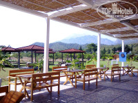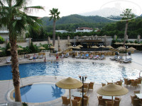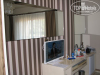 небольшая, ухоженная : внутренний дворик с бассейном и террасой, окружили зеленью и уютно оформили. Самый красивый вид - из номеров на сторону бассейна. Тут и горы, и красиво оформленный дворик с бассейнами (мелкий для деток и обычный для взрослых), пальмы, сосны и зеленые апельсиновые сады. Отдельный недостаток - в лобби и ресторане не включают кондиционер, хоть он и предусмотрен. Экономия чувствуется. Если в лобби это можно потерпеть, пока проскочишь с пляжа или из ресторана в номер, то кушать в жару некомфортно, сидишь за столиком и обливаешься потом в красивом платье и с макияжем. Наверное, поэтому большинство не заморачивается, ходит в пляжной одежде как в столовку. Тут БОЛЬШОЙ минус хозяину, хотя с финансовой точки зрения понятно, что режим экономии, глядя на закрытые мёртвые большинство отелей в Кемере. Надеюсь, с возвращением туристов в Турцию этот недостаток исчезнет. Вай-фай вас расстроит по той же причине, пробуйте во дворике сесть поближе к соседнему отелю - там будет вариант получше. По той же причине вы не всегда наберете воды в кулере на ресепшн. Ловите момент. Тк при заселении вам поставят бутылочки воды по 0,5л, не выбрасывайте, потом будете сами пополнять в лобби или в ресторане. Более вам не принесут. Мини-бар отдельная плата.