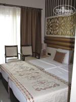 приличные, практически новые. Но самые мелкогабаритные на минус первом этаже с видом на бассейн, там ходить надо бочком или по очереди. Смахивает на эконом, но заявлено - стандарт, площадь не соответствует. Самый верхний этаж сразу под крышей, без чердака, в жару конечно будет круто. Санузлы совмещенные, симпатичные, столешницы умывальника под мрамор, красиво, один недостаток - для полотенец ни одного крючка. Лотков на умывальнике для этого тоже нет. Зато есть трёхрожковые сушилки на балконах. Уборка была скромной, но регулярной, если учесть, что мы не пачкали - вполне приличный отдых получается. Полотенца поменяли дважды за 9 дней, постель не меняли, но учитывая, что после моря дважды в день принимаешь душ - вполне хватает. ОТДЕЛЬНЫЙ МИНУС - синтетические покрывала , заказанные хозяином отеля специально с шиком с названием БОТАНИК! Они противные кусючие и все в катышках, спать очень неприятно, появляется зуд, особенно когда загораешь! Просьба к управляющим - исправьте ситуацию, приобретите х/б покрывала или предоставляйте ещё простыни! В жарком климате это просто необходимо! ПЛЮС: Отель предоставляет мини-набор : мыло, шампунь, гель для душа, лосьоны для рук и тела, швейный мини-набор, шапочка для душа, ватные палочки и диски - всё отлично! Пополняют использованные бутылочки, но не регулярно. Можете сами подойти к горничным, которые убираются даже по соседним номерам - вам поменяют использованное на новое. Если ваш номер не убрали, а вам это необходимо - повесьте на дверь бумажный спецзнак, на котором написано - пожалуйста, уберите в номере. Или подойдите к горничной, когда она убирается на вашем этаже. Они все приятные в общении. Оставлять чаевые - по желанию. Сейф в номере 1 доллар в день. Полотенца для пляжа 1 доллар в день. Лучше взять с собой. В номере сейфом не пользовалась, всё на месте без претензий. Если конечно, у вас нет бриллиантов и суммы на шубу - вполне можно обойтись без сейфа. Живности в номере нет, чисто. А дверь в санузел надо держать закрытой, там при планировке намудрили со сливом, нет положенных "колен" с водяной защитой, которые не пускают запах канализации, поэтому все миазмы в нос. Тут конечно прокол. Кондишн общий, нормально, выставляешь нужный температурный режим - и комфорт. Комаров не было. Если не устраивает номер - добивайтесь на рецепшн. Или за деньги, или повезёт так. Впечатление, что селят похуже, а там подождём. Возле отеля всегда горела вывеска, что есть свободные номера. Ну это на совести менеджеров.