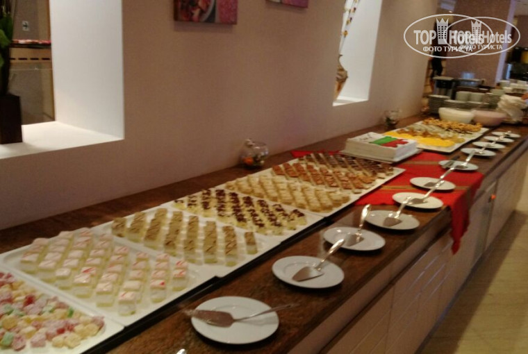 В отеле прекрасная, просто прекрасная еда. Ребенок ел все, что ему давали - супы, каши, мясо, сладости и фрукты. Повара просто молодцы - разнообразное мясо, раз был даже заяц, пельмешки, фаршированное мяско, салатики - шопский, греческий, цезарь (правда, на цезарь мало походил, но был вкусный). Конечно, такого разнообразия, как в Турции, не было - но все, что было - было вкусно, для четверки прям очень хорошо. И очень много фруктов - киви, яблоки, груши, грейпфруты, апельсины, сливы, виноград, персики, арбуз, дыня. В снек-баре вкусное мороженое)) Ни разу ни у нас, ни у ребенка не было проблем с животом.