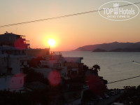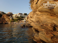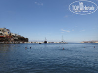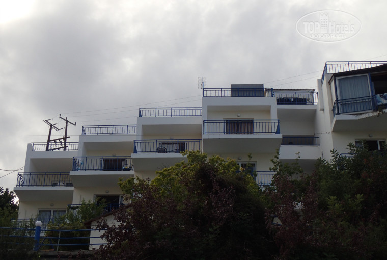 На следующий день в 12 ч нас переселили в номер 103 в Mythoste. Апартаменты, 2 комнаты, плита, чайник, холодильник. Балкон с видом на море. Пляж маленький, но уютный. На фото второй слева, здорово засыпать и просыпаться под шум прибоя, встречать восход и закат. Убирали каждый день, белье и полотенца меняли через 2 дня.