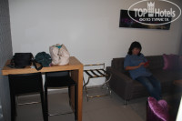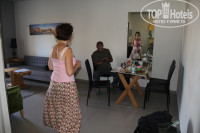 Проживание и особенности. Мы жили на 8 этаже в комнате 85. Двухкомнатные апартаменты. Душ, умывальник, мини-кухня с чайником (микроволновки нет, что минус). Плазменный ТВ с приставкой. С ней, что бы посмотреть ТВ пришлось повозиться, т.к. в пульте сели батарейки. Для того что бы была горячая вода (Внимание!) должен быть включен выключатель с красной подсветкой. Это стандартная клавиша, как для включения света в умывальную комнату. Холодильник маленький. Стол, два стула. Если брать номер с последней цифрой *8 (58, 68 и т.п.) то номер будет еще больше, такой попался нашим друзьям. Наши номера – на теневую сторону, что большой плюс. Кондиционеры не включали ни разу. Полотенца меняли каждый день. Убирались тоже каждый день. Т.к. это апартаменты, то еду брали из дома. Во первых привычная еда, во вторых в 4-5 раз дешевле, чем в Израиле. Там даже на рынке цены поражают своей необузданностью. Напротив отеля продуктовый магазин. Несколько кафе, которые работают после 11-00. Т.к. мы уходили в 7-00, то чайник и мини-кухня – самое то.
