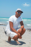 Этот чел, переодически мелькает перед ресепшн с Вами, или за Вами... даже не заходя в номер, просто ходя по пятам и по территории, общается с Вами, пьет и ест, т.е. -"выгуливает Вас" - провожая до магазина например, или на экскурсию... (т.к. он местный - и экскурсии дешевле и кофе вкуснее. И это хорошая разница в цене и качестве! Поверьте на слово! :))) К примеру - для местных кофе 1-1,5 тунисских динар, а для туристов 1-1,5 евро... И причем качество кофе в кафе в разы лучше... Вот такой развод туристов) Извините, отвлеклась...