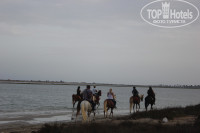 - Маленькая полоска грязного, прописанного и вонючего песка, мусор, сломанные лежаки, насчитала штук 30 не больше, половина сломанных, матрасы с проеденным жуками и старым поролоном, а зонтиков и подавно штук 10... Занимать лежаки надо было в 6.00 иначе свободных, утром после завтрака, уже нет! Свободные бывают только в самое пекло, когда народ уходит отдохнуть... Но многие заняв лежак утром, просто оставляли на нем полотенце... Рядом будка секьюрити, она же туалет))) А вот туалет в кафе, ужас ужасный... зайти невозможно! Их не мыли очень давно или не моют вообще...