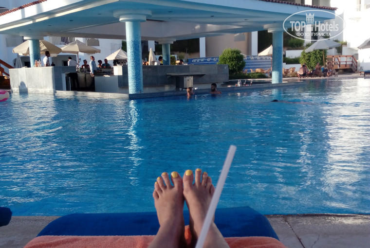 Плюсы: близость моря, красивая территория, выпивка не отдавала анисом, много баров, красивый вид почти из всех номеров, приветливый персонал, недалеко (10 мин ходьбы) расположен развлекательный район Сохо.