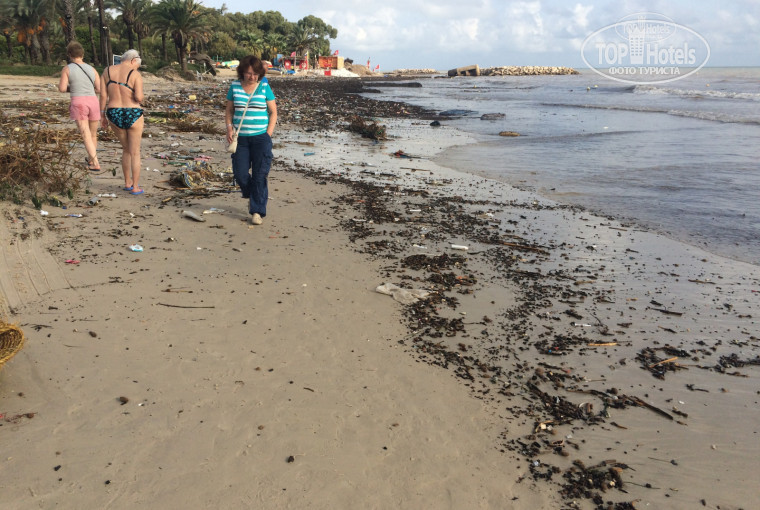 Разумеется после многочасовых дождей вся грязь благополучно попадает в море!!!! И судя по мой фотографии - в приложении - она весь разнообразна! Это и жирные крысы, морские ежи (разных мастей), пластиковый мусор, матрасы, шезлонги, кактусы, куртки, пакеты, обувь и прочее и прочее! Анти - санитария полная.... Купаться было брезгливо (собственно говоря и не купались).