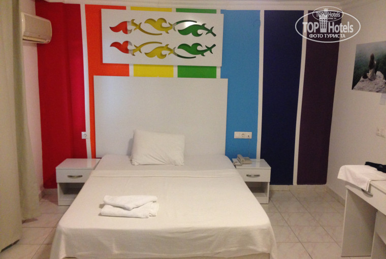 Рейс был ночной, вылет из Москвы в три часа ночи, в отель привезли около 10 утра, на завтрак мы не успели, поэтому сразу же приступили к выбору номера, менеджер отеля Метин показал на выбор несколько вариантов на самых разных этажах, мы остановились на жёлтом корпусе, 2 этаж, двухкомнатный номер, прожили мы там одну ночь и поняли, что тяжело жить в одном номере с двумя детьми, подошли на ресепшен и попросили нас расселить (бронировали именно два отдельных номера), отель был переполнен, так там говорили, мы снова бегали смотрели номера, но они были все слишком высоко, лестницы в отеле просто убийственные, не знаю как люди жили выше третьего этажа!!! Хасан, генеральный менеджер отеля, подошёл к нам и пообещал решить проблему, наконец нас с подругой расселили, нам с сыном достался зелёный корпус, 2 этаж, номер без балкона (702), небольшой, техника работала исправно, с водой тоже проблем не возникало, огромный минус - окна во двор, плюс вход в ресторан, очень не хватало балкона, полотенца в номере не сохли, фрукты и вино нам так никто и не принёс, хоть и обещали.