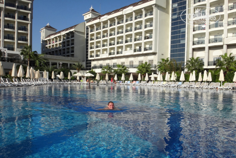 Сам отель очень стильный, красивый, удобный в отдыхе! Ресторан красивый, огромный- это действительно ресторан, а не столовка советских времём, очень много в ресторане укромных закутков для спокойного приёма пищи, и все по разному оформлены- разные интерьеры столов, стульев, какие то стеночки декоративные_ прикольно!. Питание отличное, практически круглые сутки. Да, из мяса преобладает курица, но каждый вечер её разбавляли другими видами мяса: баранина, телятина, ягнёнок, ливер;всегда рыба! Всё очень красиво оформлено!Из фруктов: вкуснющие арбузы, сливы, персики, виноград, яблоки, мандарины, апельсины, груши. Фрукты целиковые, не резанные, как было в других отелях!Никаких очередей, всё что заканчивается- сразу же доносится на прилавки. На пляже каждый день пеклись лепёшки с разной начинкой- очень вкусно! У бассейна с двух часов- вкусное мороженное(разное), выпекались пончики, пицца! В лобби баре- турецкое кофе прям из турки в милепуперные чашечки (с 2 до 8 часов вечера). На пляже достойное кафе с обедешним меню, напитками, фруктами!