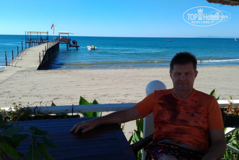Первые три дня нам не очень повезло (23-25 сентября) с погодой, видно циклон который накрыл Россию, немного зацепил и Турцию, вечерами было несколько прохладно и днем жена даже в море не залезла, я тот купался во всю :о) Но затем погода вошла в свою климатическую норму и на пляже днем невозможно стало стоять на раскаленном песке. Пляж тут песчаный и чистый, видели как ночью его чистит техника. Море чистое, вход пологий, комфортно для детей и тех кто плохо плавает. Брали маску и трубку, но после красного моря тут увы вообще не на что смотреть. Поэтому я и выбирал отель с аквапарком...Поплавал в море и бегом на горки и в бассейн ополоснутся. Аквапарк работает почти целый день (перерыв с 12:00 до 13:00) Катался каждый день...не надоело :о) Ребятам спасателям привет и респект целый день запускают эти круги, при том улыбаются, всегда приветливы ( Неllo Big Man :о)) при том у них не забалуешь :о) пьяных не пускают, если хулиганят на горке тоже забирают круг, все stop, а большим дядям только большой круг :о).