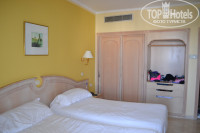 Отдыхали в этом отеле с подругой. В аэропорту Монастира араб лихо схватил наши сумки и погрузил на телегу. Выгрузив вещи у нашего автобуса, естественно, попросил деньги - дали пару динар). Доехали до отеля быстро. На ресепшене нам сказали, что у нас стандартный номер и предложили номер более высокой категории (мы отказались). Дали номер на третьем этаже (карта-ключ). Номер хороший, всё исправно работало, кроме кондиционера, поэтому ночью было жарковато, несмотря на открытую дверь балкона. В нашем номере был сейф. Уборка нормальная, ежедневная, ничего не пропадало.