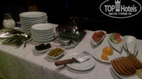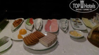 Отель был оплачен с завтраками. Завтраки шведский стол в ресторане-баре на первом этаже отеля. Всегда одно и тоже. За все 8 дней ничего не менялось. Яичница, сосиски, огурцы, помидоры, оливки, брынза, сыр (плавленный, порционный), колбаса двух видов, масло, джем (айвовый), хлеб. Из сладкого только печенье и вафли. Сок вкусный. Вода в бутылках по 0.5. Чай, кофе приносила официантка. Минус - в помещении прокурено.