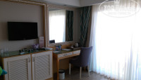 Отдыхали в этом отеле в конце октября 2016, с 22 по 30. Отель не плох, но много минусов. Брали номер с прямым видом на море, вид конечно был, но какой ... см. фото и поймете, кроме этого постоянный шум от кондиционеров соседнего отеля ... есть фото этих нарушителей тишины. По питанию, голодными не останетесь, но бывало пройдешь по ресторану и ничего не выберешь, делаешь второй заход и просто накладываешь ... в последние два дня вообще плохо было. Особое внимание стоит обратить на посуду, стекло и керамику ещё моют, а вот пластик грязный, взял белого вина в пластиковом бокале, так на нём была женская помада, да и вино отвратительное. Вечером скукота, развлекательная программа просто отсутствовала или была никакой. И ещё, много местных, турки, арабы и тд., особенно на выходных, если в процентах, то наверное 80% точно... По пляжу, очень нехватало "кораллок", см. фото. Номер убирали каждый день, но только по центру. Из плюсов, наличие аквапарка. Вообщем отдыхом довольны, море супер. А все эти минусы можно отнести на то, что уже был конец сезона и они просто забили на всё и на всех... Да и по номеру, если берете с видом на море, то требуйте этаж повыше.