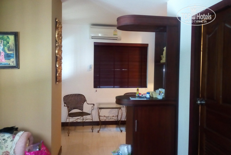 Отдыхали в этом отеле с 11.10 по 22.10. Заселили сразу же. Отель нам безумно понравился, хоть и маленький,но ухоженный и настолько уютный, днем тихо и спокойно,одним словом Сабай. Очень порадовало что не было китайцев,а если и были то их было не видно и не слышно. Красота))) В 2015 отдыхали в Амбасадоре,вот там их было так много!!! Сколько от них шума!!! Поэтому отсутствие китайцев это несомненно огромный + Рите. Одновременно + и — отеля является его расположение, до пирса можно дойти пешком. Если стоять спиной к отелю,то в центр налево,а на русскую улицу направо,идти минут 5—7 до вывески паттайя парк. Напротив цитрус парка меняли деньги,как нам показался самый выгодный курс. Ели тоже напротив цитрус парка,кафе конборан,очень вкусный том ям,до этого ели в кафе Антошка и если это был том ям с морепродуктами (3 креветки и 5 мелких кусочков кальмаров),то пусть сами его и едят)) Русская улица нам не понравилась,кафе дорогие,единственный плюс все не острое, вечерами много пьяных. Рынок возле паттаи парк тоже недешевый, много что принадлежит русским. И почему то на ум сразу приходит фраза 'мы русские не обманываем друг друга')) Кроме русской улицы поесть рядом негде,это из минусов расположения. Мы ездили на ночной рынок Джомтьен. И цены ниже и выбор хороший,даже с учетом тук—тука покушать выходило дешевле в 2 раза, на русской улице том ям 100 бат,на джомтьене 60 бат и вполне съедобный, жаренная рыба на рынке возле паттаи парк 90 бат,на джомтьене 50