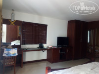 куча шкафов,сейф,2 кондиционера, тв,двд,из посуды стаканы,кружки и ложки. Полотенца вроде меняли каждый день,про постельное ничего не скажу,не обратили внимание,а вот полы похоже и не мыли,в ванной точно. То ли у нас упала ватная палочка, то ли осталась после прошлых жильцов, но за 9 дней ее так и не убрали)) мне не трудно самой поднять и выкинуть,но вот решила проверить уберут или нет) Муж у меня высокий, он увидел толстый слой пыли на холодильнике. Мы специально не проверяли как убирают,мы отдыхать приехали,а не за уборкой следить,просто так получилось.