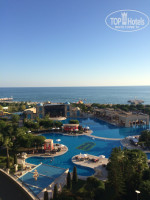 Отдыхал в отеле с друзьями в начале октября. Прилетели в Анталию в 15:00 и уже в 17:00 мы были в отеле, номер дали сразу очень хороший с видом на море. Территория отеля достаточно большая,есть где погулять, очень красивый главный бассейн! Пляж очень компактный,лежаков всегда хватало. Очень удобно сделан пляж маленькими островками на которых располагаются лежаки, если хочешь лежать своей компанией вам никто не помешает! Большим преимуществом так же является то ,что на пляже есть бар. Вход в море очень хороший,есть небольшая галька . Песок чистится ежедневно на пляже!