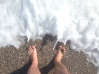 Пляж с пирсом, галечный, вода чистая. Шезлонги есть ВСЕГДА, не занимайте, их реально дохрена!!!