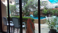 Начнем с главного, это не привычный нам, туристам отель, очень маленький и без отсутствия шведского стола на завтрак. Вернее завтрак есть, но он строго фиксированный: омлет с беконом, тосты с джемом, сок и чай или кофе. Надоедает уже на 3 день. Категорически рекомендую не оплачивать завтраки при бронировании. При этом вы легко можете их заказать сами. Цена фиксированная 120 бат. Ах, да, на завтрак ничего другого заказать нельзя!