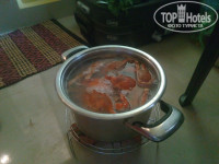 Питание предусмотрено за пределами отеля, но мы умудрялись готовить сами. У нас была с собой кастрюля "Цептер" с подставкой, миски, ложки, нож. Разогревали на сухом горючем во дворе, или когда было ветрено, то прямо в номере. Конечно, хозяин Реди был не в восторге от таких туристов как мы, но он много чего разрешал, ради того, чтобы отель стал популярным и посещаемым. Мы же старались быть аккуратными- ведь в номере, когда мы заселялись, было чисто и убрано, постель белоснежная, безо всяких там подозрительных пятен и волос. Уборка производится по запросу, то же самое вынос мусора. Нам это понравилось.