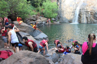 На экскурсии ездили на водопад Дудгсагар. Внимание на обезьян, которые очень наглые. Мы хотели их угостить бананами, но они быстро смекнули что к чему. Только я снял с плеч рюкзак, как огромный доминантный самец набросился сам, вскрыл раздвижные замочки и отхватил целую вязку, из 16 шт. К счастью, по пути 2 банана оторвалось, а основная вязка упала и я успел ее поднять. В целом посетить это место стоит. Ехать нужно до ст.Кулем поездом, а там на джипе (на месте сориентируетесь).