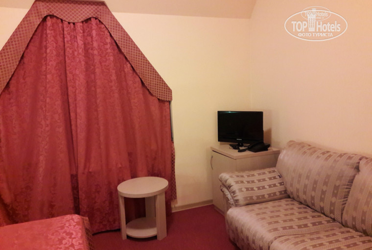 Поселились в номере 313. Третий этаж. Дымом от камина не пахло. Отопление , действительно, работает сильно. И в комнате, и в ванной тёплые полы. Спали с открытой форточкой. Окна выходили во двор и на горы. Шум не беспокоил. Комната большая и очень приятная. Всё работало. Ж/к телевизор, холодильник, очень уютный диван, хороший матрац на кровати, в шкафах все полки на месте))), вешалки. При входе удобное место с вешалкой, щётками для одежды и обуви. На полу ковролин. Порадовала ванна, если не ходили в аквапарк, отмокали в ней. Присутствовал периодически канализационный запах, но включение вытяжки исправляло ситуацию.