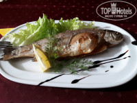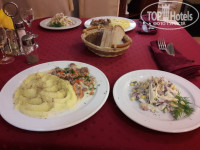 Ужин с 18-00 до 20-00. Столовая на первом этаже, приятная, с аквариумом, телевизором, красивым видом из окна на Горки Город и горы. Ужин порционный, приносит официантка. Ужины нам очень понравились. Сытные и вкусные. Реально вкусные! Спасибо повару. Официантке Ольге так же большое спасибо! Она всегда успевала и подать, и убрать, и стол накрыть, и красоту навести . Второй девушке это не так хорошо удавалось. Но по востребованию она тоже старалась)))