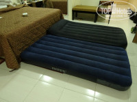ПРИМЕЧАНИЕ ПО НОМЕРУ: Все номера в этом отеле только стандарт!Нет номеров с дополнительными кроватями -вы их можете только забронировать сразу у туроператора или оплатить на месте.Стоимость раскладушки 15 долларов в сутки.Сами сотрудники считают что эти доп.места в плохом состоянии.Наша семья не бронировала раскладушку,а везла с собой надувные матрасы( они стояли всегда в надутом состоянии и не кто не запретил нам использовать их( см.фото).В номере стоит маленький диванчик но он не раскладывается-спальное место у него 120 см-я специально фотографировала дочь чтобы вам это продемонстрировать( см.фото).Имейте ввиду если у вас в ваучере даже и написано что размещение 2+1 или 2+2 то это не значит что вам дадут раскладушку-она только за дополнительную оплату.ВЕЗИТЕ МАТРАСЫ И НАСОС!