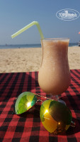 По ценам в кафе можете посмотреть фото к отзыву, там есть несколько фотографий меню шека на пляже. Цены у них примерно одинаковые.