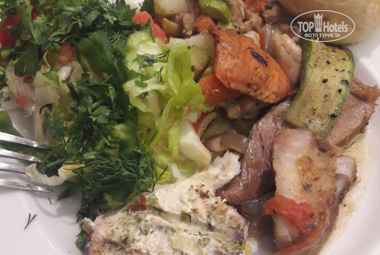 Питание было хорошим:рыба,мясо, пару раз была вкусная печенка на гриле, один раз были даже крабы на гриле.