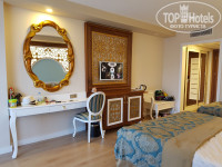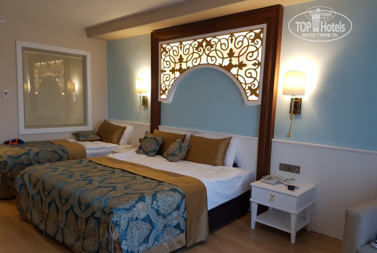 Отдыхали в конце мая 2016г семьей ( 4 взр+ 2 детей) в данной отеле, когда Турция была закрыта для русских. Отель бронировали на прямую и ехали в неизвестность, тк отзывов не было. Мы были вторые русские с открытия данного отеля, такое ощущение, что до нас в номере никто не жил! Отель заселен был на треть. Все красиво, я бы даже сказала пафосно. Питание и обслуживание выше всяких похвал, просто великолепно. Но территория отеля маленькая, вытянутая, рядом строят другой отель на расстоянии от этого метров в 5, т.е окна данного отеля вскоре будут встречаться с окнами нового буквально в 3 метров! И это делюкс! На территории есть не плохой бассейн, бассейн с горками, релакс зона. Анимация была на немецком, но дети танцевали). До пляжа идти метров 500, ходит машинка для гольфа постоянно. Пляж песок, но при заходе галька около метра, без обуви зайти проблематично, особенно деткам.