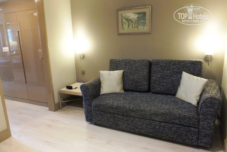 Номер сам по себе очень хороший, двухкомнатный и светлый. Особенно поразило многообразие подушек на кровати и прикроватное Pillow menu. В номере есть набор для чаепития, в ванной комнате - наборы для душа, сейф (бесплатно),минибар (бесплатно) с регулярным ежедневным пополнением.Утюга нет, данный сервис предлагается за доп.плату.
