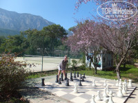 очень большая , чистая, зеленая и ухоженная территория. У моря на газоне располагается множество шезлонгов, на которых приятно позагорать, почитать и просто отдохнуть. Отель был награжден грамотой за вклад в защиту бездомных животных, поэтому на территории располагается мини-зоопарк (гуси,утки, кролики,и даже клетка с пушистой и очень активной собакой), а также по территории разгуливает полчище котов, которые чувствуют себя очень вольготно, забираются на колени, требуют ласки и вкусняшек. Они совершенно не опасны и вызывали у нас исключительно положительные эмоции.