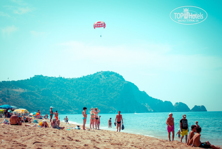 До моря пару минут, сразу через дорогу пляж Клеопатра - лучший пляж Аланьи, ради которого мы и полетели в Турцию! Но в самом отеле тихо и спокойно, отель стоит не у самой дороги, а вторым зданием от нее. Единственное, что нарушало спокойствие - это утренняя молитва! Мечеть находится в центре города, как и отель! Но на второй день мы ее уже не замечали и спокойно спали дальше даже с открытым балконом)) просто по-началу было непривычно)) Гораздо лучше, когда отель находится в центре - всегда есть куда сходить, Первана нам даже карты рисовала, как куда пройти: магазины, рынок, клубы, кафешки, рестораны - всё в шаговой доступности! Если куда надо было подальше - садились на автобус (остановка тоже рядом)! Главная древняя достопримечательность Аланьи - это крепость (Коле) - даже пешком можно прогуляться на гору, она совсем рядом - шикарные виды города открылись нам с высоты птичьего полёта!!!