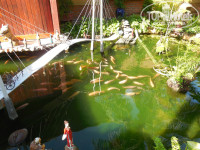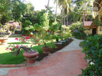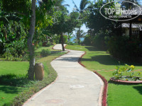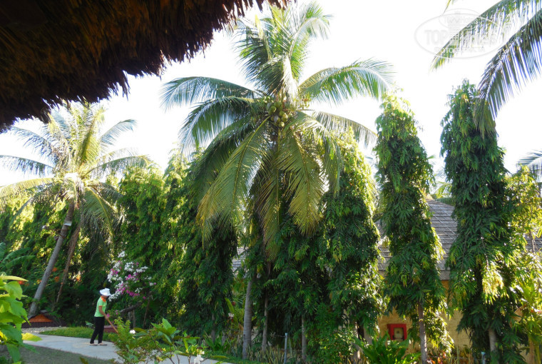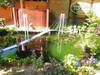 Территория. Небольшая. Такой коридор своеобразный: по одну сторону бунгало, посередине дорожка, по другую сторону зелень вдоль забора. Уютно, даже с элементами декора в виде прудиков с лотосом, рыбками. Территория - тоже супергуд))
