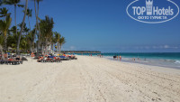 Пляж у отеля хороший, чистый, с белым песочком и красивой прозрачной водой. Водорослей очень мало, в отличие от 15 года, когда лежали сугробы по метру в высоту. Но на пляже нет зонтиков, как обычно в Пунта Кане везде, только высокие пальмы, под которыми тяжело укрыться от палящего солнца. Поэтому сгореть конечно запросто можно.