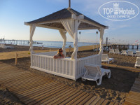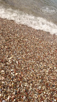 Пляж каменистый. Справа от пирса есть кусочек со средней галькой - но для меня без тапочек зайти было проблематично.