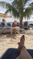 Пляж не особо чистый. Работники пляжа все что людьми не дорито выливают прям в песок. Поэтому мухи летают. А они прям кусучие там. В целом работники пляжа к людям из европы прям стеляться. Помню у нас забрал зонтик и отнес его немцам, где была тень и он им совсем не был нужен. Было очень непрятно.