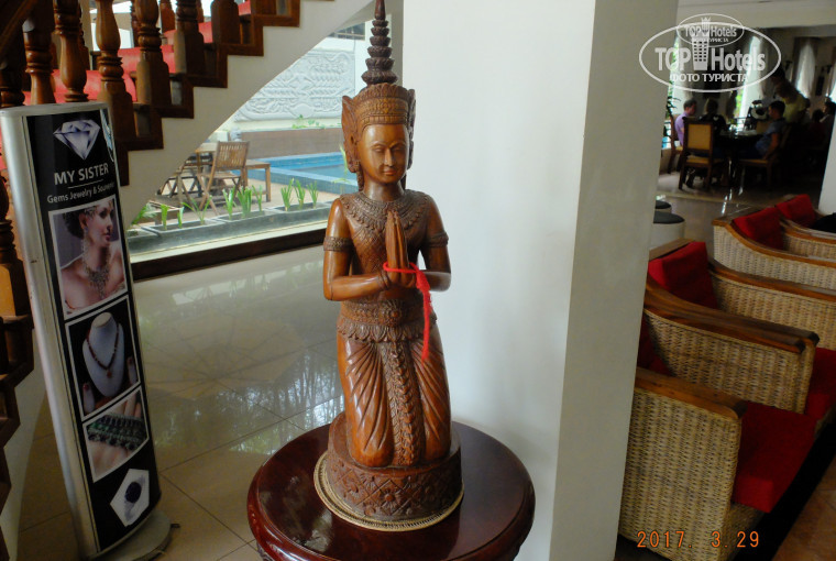 Отель. Построен в колониальном стиле. Очень красивая мебель из массива красного дерева. Слева от ресепшена расположилась внушительная статуя смеющегося бога богатства Хоттея:) Мне очень понравилось:))