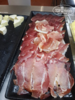 много видов вкусных колбас ветчины и французские сыры.и это утром в обед и