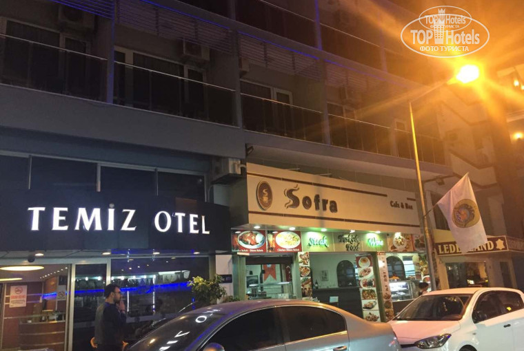 Отель находится в центре города, очень удобное расположение: между центральной улицей - бульвар Ататюрка, на которой расположены магазины (хотя они там везде) и набережной, где расположены Красная Башня со стеной (историческая достопримечательность - бесплатно!!!) и Аланийская марина. Работники отеля русского языка не знают, но можно сносно общаться на английском языке. Они услужливы и доброжелательны. На рисепшен работают попеременно 4 мужчины, а в ресторане и убирают номера - 2 женщины. Наш номер выходил во двор, в котором гуляли курочки и потешно пел петушок. В основном было тихо и хорошо. Под балконом росла мушмула. В номере был кондиционер и телевизор, 3 кровати, 2 тумбочки, 2 стула, туалетный столик и пуфик, платяной шкаф. В санузле - душ, унитаз, умывальник, фен. Мусор выносили каждый день, бумаги туалетной тоже хватало с избытком. Жидкое мыло возле умывальника и в душевом отсеке. Чтобы полотенца заменили, их нужно было бросить на пол. В номере была всего одна розетка!!!! Пришлось отключить телевизор и холодильник (в нем были платные газированные напитки), чтобы заряжать все наши девайсы. Также очень плохим было освещение. Я люблю яркий свет, а он был очень тусклым. Два бра и одна люстра в комнате, но от этого светлее не было))) На полу плитка. Постельное белье чистое, кровати удобные, матрасы отличные. На маленьком балкончике круглый стол и пепельница. Веревок для сушки белья нет. Хорошо, что в чемодане было специальное приспособление для сушки носков. У нас был экскурсионный тур: мы рано вставали и поздно возвращались, все, что нужно в гостиничном номере-это помыться и лечь спать, отель этому соответствовал. Рядом с отелем ресторан Софра, где кебап (шаурма) по 5 лир - дешевле цен нет, дальше, через 3 метра к центру уже 6 лир, еще дальше - 8. В этом ресторане мы постоянно ужинали. Разные блюда брали, все не успели попробовать, хотя брали по 3 разных блюда за раз. Нас там угощали чаем и давали салат за счет заведения. Голодными мы не были и денег на еду в этом ресторане много не потратили. Работники ресторана тоже просто душки). В нашем отеле мы только завтракали, в ресторане на 5 этаже с потрясающим видом из панорамных окон. Набор блюд на завтрак почти никогда не отличался, один раз были сосиски и один раз был хачапури. Завтрак в отеле с 8:00 до 10:00 часов. Если мы выезжали в 3-4 часа утра, нам давали ланч-бокс, который мы просили заранее, после завтрака предыдущего дня. В ланч-бокс входило: 3-4 кусочка хлеба (очень вкусный), сыр 2 видов, оливки, яйцо (не всегда), масло (когда не было яйца). Голодными мы не были никогда. Напротив отеля магазин, в котором мы брали воду, соки, газировку. Там же есть и спиртные напитки, снеки, сигареты. Цены хорошие, не ищите дешевле в округе. Рядом с рестораном Софра магазин кожаных изделий - отличные продавцы и хозяин тоже. Купили 1 демисезонную куртку за 100 долларов и одну с мехом (на 2 стороны можно носить) за 170 долларов. Экскурсии и развлечения рекомендую приобретать у местного предпринимателя Джамала, он на этом рынке много лет, свободно общается на русском языке. Никаких проблем не было: все, что входит в экскурсию, все было предложено и гиды были русскоговорящими. Цены у него ниже, чем в турфирмах и скидка есть при заказе 3 экскурсий...