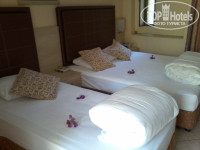 впервые отдохнули семьей в Турции (2 е взрослых плюс ребенок 4х лет), выбрали отель из-за пляжных площадок. Итак начну по порядку)) приехали в отель в 8 утра, нас пригласили на завтрак, и в 10 утра получили карточку от номера, на ресепшене была рускоговорящая девушка, все объяснили, рассказали, носильщик довез нас с вещами на электрокаре до номера. Номер стандарт, одна двуспальная кровать, одна односпальная, шкаф-купе, стол, телевизор, тумбочки, есть кухонька, просторная ванная комната, номер нам понравился. Красивая, ухоженная территория, утром можно встретить курочек, петушков, уточек, гуся, индюка, которые свободно гуляют по территории отеля. В ванной комнате есть все необходимое ( гель для душа, шампунь, ватные диски, ватные палочки, ИГОЛКА С НИТКАМИ, мыло, тб), есть фен. В комнате кондер, сейф, телевизор обычный, у нас он плохо показывал, но это нам было не важно. По уборке номера: лично у нас убирались очень хорошо, каждый день мыли полы и вытирали пыль, меняли полотенца каждый день, кровати всегда были чистые и заправлены, убиралась очень хорошая женщина, всегда улыбалась)