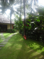 Пару минут на reception и нас ведут до нашего номера Bungalow Garden View . Я иду и замечаю, что отель так же красив, ухожен и чист. Поменялись некоторые фигурки, появились новые. А еще- отель украсили для встречи Нового года, это было круто, мило и приятно! Подключали новогоднюю подсветку пальм, украшали бар на бассейне. Чудесно! Номер( по удивительной случайности через два бунгало от нашего предыдущего) в трех шагах от бассейна, просторный и чистый, как и в прошлый раз- корзина с фруктами и свой садик в ванной комнате. Уборка в номере ежедневная, белье белоснежное, входные стеклянные двери сверкают( даже шторы на них и легкие и темные тяжелые всегда свежие, без запаха пыли).