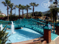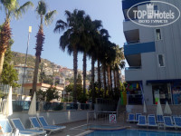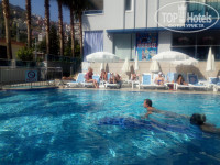 Теперь по каждому пункту, отель городской, находится не в центре,а слегка на отшибе. До пляжа топать минут 15,до центра минут 30. Расположение понравилось, практически спальный район, тихий, за счет близости гор было еще и не так жарко. От городского отеля особой территории не ждали, но здесь ее нет совсем. Два маленьких бассейна, вокруг них лежаки и столики, за которыми можно покушать во время завтрака-обеда-ужина. Корпуса три, первый и второй разделены этими самыми бассейнами, второй и третий друг от друга наверно в метрах двух- трех, буквально окна в окна. Между вторым и третьим корпусом сбоку еще воткнута небольшая детская площадка. Отмечу, что это самая маленькая территория у городского отеля,которую я когда-либо видела)