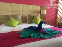 Приехали в отель в 9 часов утра. Сразу же нас отправили завтракать, после чего засилили в номер на 3 этаже на троих дали четырехместный номер без доплат и с видом на море, хотя покупали обычный стандартный, что очень приятно. Очень просторный, много места, ванная отдельно от туалета. Чисто и уютно. Убирали хорошо, лебеди и цветы на кроватях постоянно. Шампуни и мыло клали, но в случаях если забывали положить, можно обращаться на рессепшен, они дадут. В номере все работало, был фен, холодильник, сейф. Воду в бутылках брать нужно в баре в больших и маленьких бутылках - как вам удобнее.
